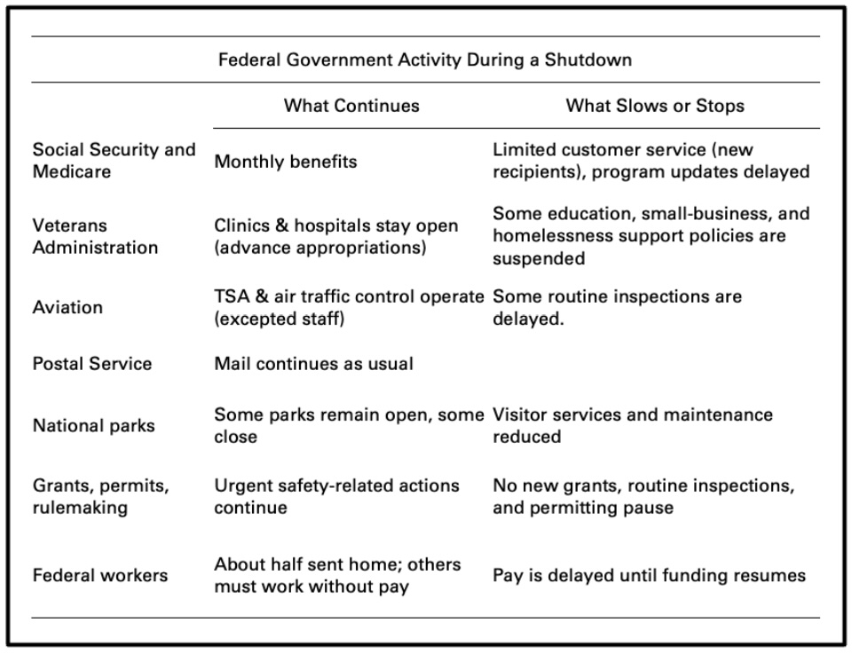 Wessel, D. (2024). Government Shutdowns: Causes and Effects. Brooklings. https://tinyurl.com/4658zdec, accessed 9/26/25.